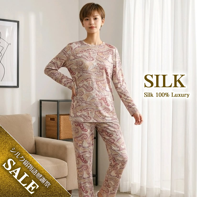 婦人ニットシルク丸首パジャマ 611【シルク100%】【限定商品31%OFF】