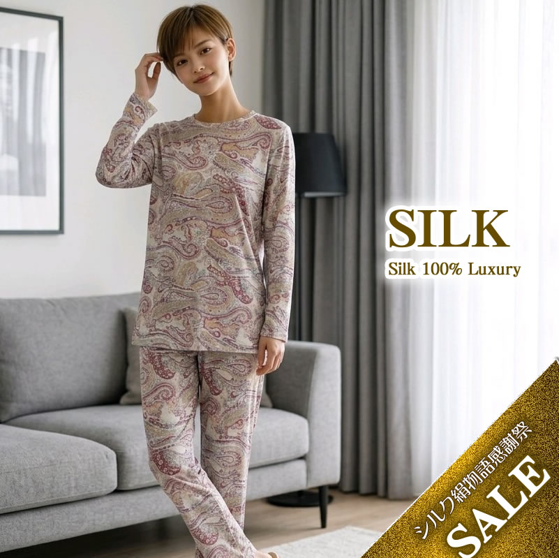 着れるのが、ニットシルクのパジャマなのです。ニットシルクの快適さをおためしください。