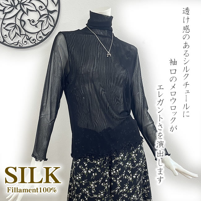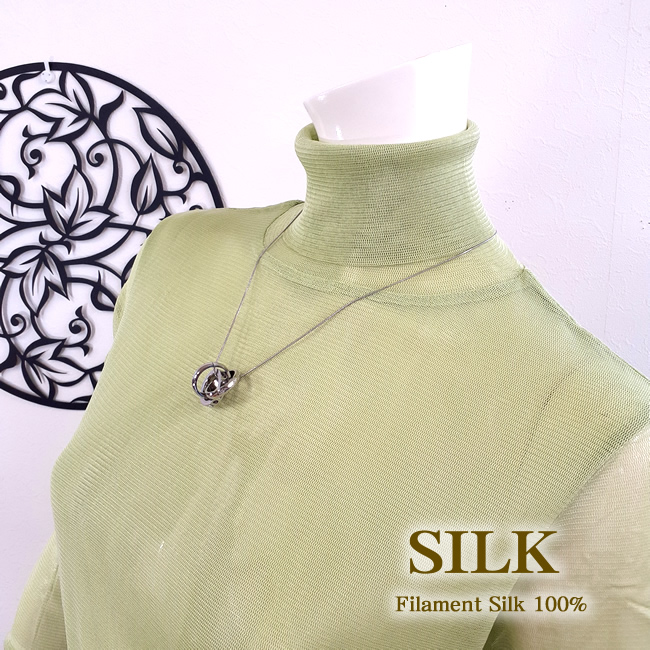 ■人気高い「ガーゼシリーズ」のタートルネックの長袖カットソーです。 強撚の絹糸を使っているので丈夫で、ガーゼ素材のさらっとした着心地が特徴です。 身頃は、二重になっており透けにくく、袖は一重で透け感がきれいです。 上品な襟もとでシンプルに折り曲げたり くしゅくしゅにしたり紫外線対策にも シンプルなデザインで女性らしいエレガントな印象を与えてくれます。 ■シャリ感があり、夏の日差しから肌をまもるのに最適です。長袖なのに絹だから暑さを 感じません。クールでシンプルでエレガントな一枚。年齢も問わずに 幅広い層から人気の商品です。 ■ガーゼ(強撚リブ)という呼称は本来のガーゼと異なる由来ではありますが、 その透け感といい、手軽さといい、ガーゼという、言い回しがぴったりときます。 肌に吸い付くように馴染み、袖は一重で品のある印象です。
