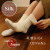■特 長 絹のアミノ酸効果でお肌を健康な状態に保つ健康 靴下です。シルクは冬温かく夏涼しく! 抗菌・防臭効果(足がにおわない)があり、優れた通気性(蒸れない)もあります。 日本の職人さんが心を込めて作りました。ありそうでなかなかない【履き口ゴムなし】シルク靴下 ■シルクの靴下をお求めやすい価格設定でご紹介いたします。この靴下は絹紬糸使用 ■一粒の繭からとれる糸(生糸)は1000m以上にもおよぶ長繊維ですが、生糸にできない繭は、 ■比較的長い繊維のものを「絹紡糸(けんぼうし)」といい、やわらかな光沢を持つふくらみのある糸