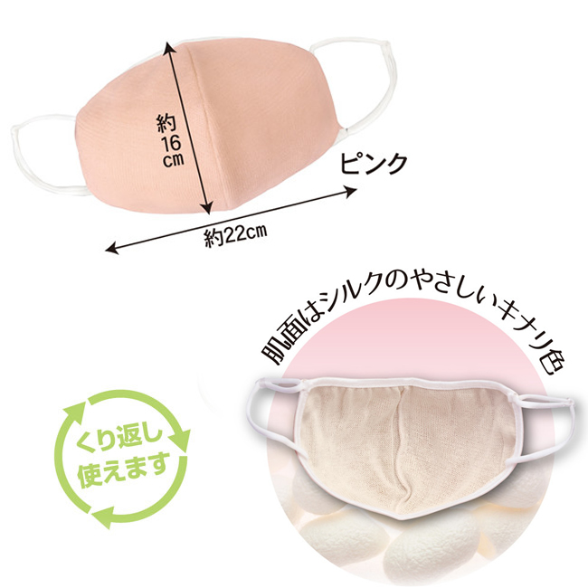 ■マスク中央部分を、立体的に装着することが でき、マスク内に空間が生まれ、シルクなので 通気性もあり普通のマスクより、 はるかに息苦しさを感じさせません。 ■吸湿性・放湿性の高いシルクが、マスク内の湿度を適度に保ち、睡眠中のあたたかい寝息 により保湿層がつくられるため、目の下、頬、口もとの乾燥を防ぎ、うるおいを保ちます。 また、のどの乾燥防止にも役立ち、心地よい睡眠をサポートします。 洗って何度も使用できる経済的なマスクです。 |