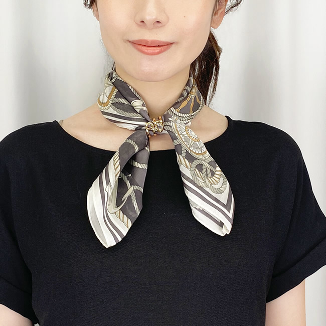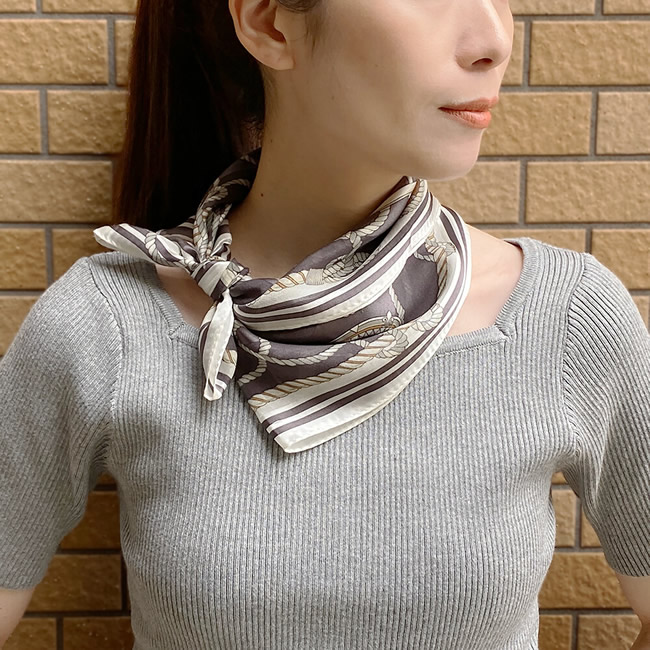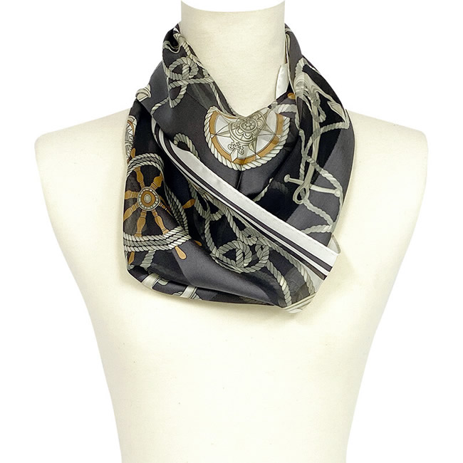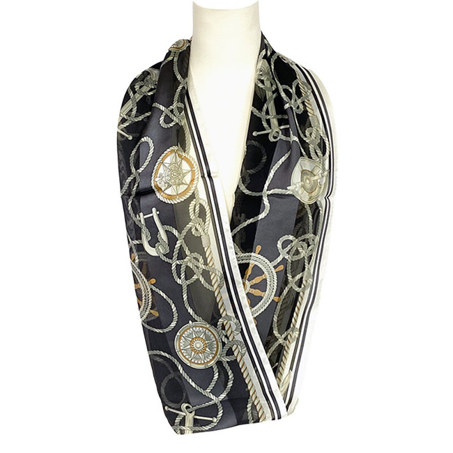 【横浜シルクスカーフ 日本製】【スヌード感覚のループタイプ】 シルク100%サテンストライプループストール 【タイマリーナ柄】 |