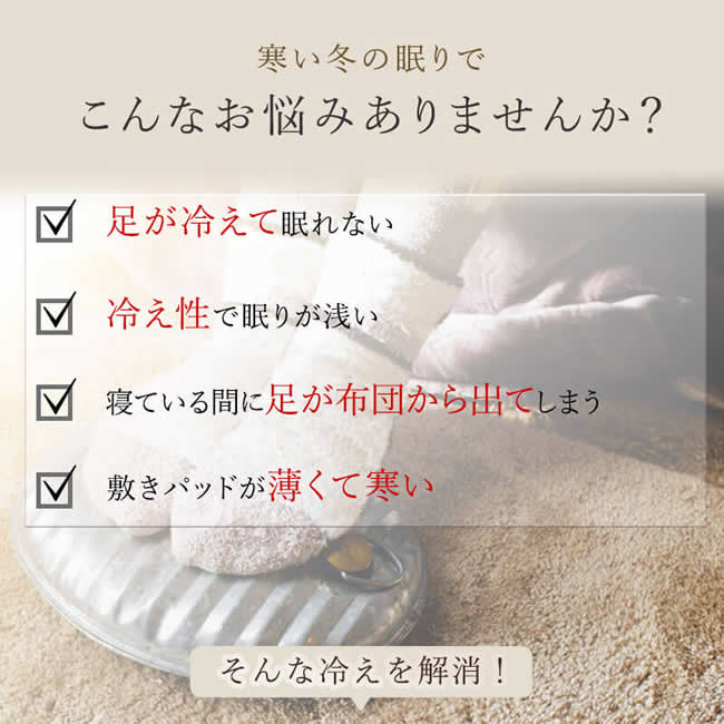 当社の独占販売商品です。使ってみると布団に入った時から足元ぽかぽかで入眠がとても