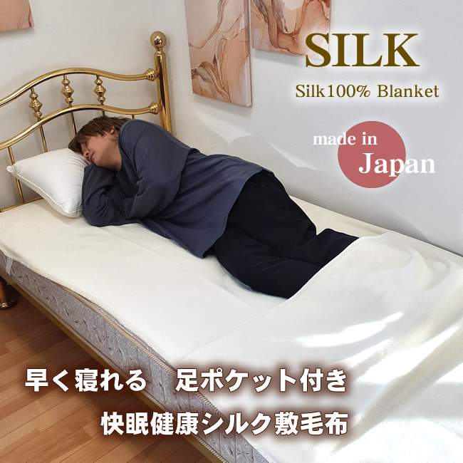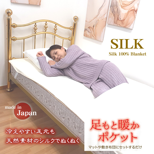【新開発】デビュー記念・今だけ半額【日本製】シルク足ポケット付き【シルク敷毛布】シングル【寝ている間ぬくぬく】