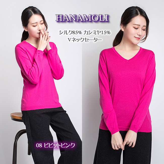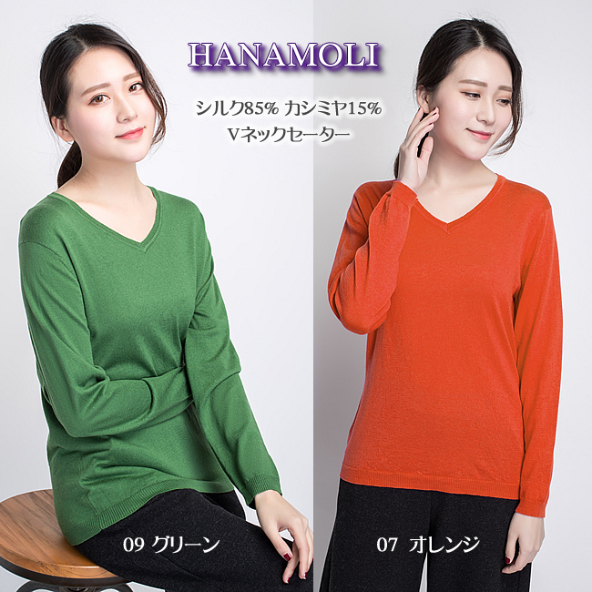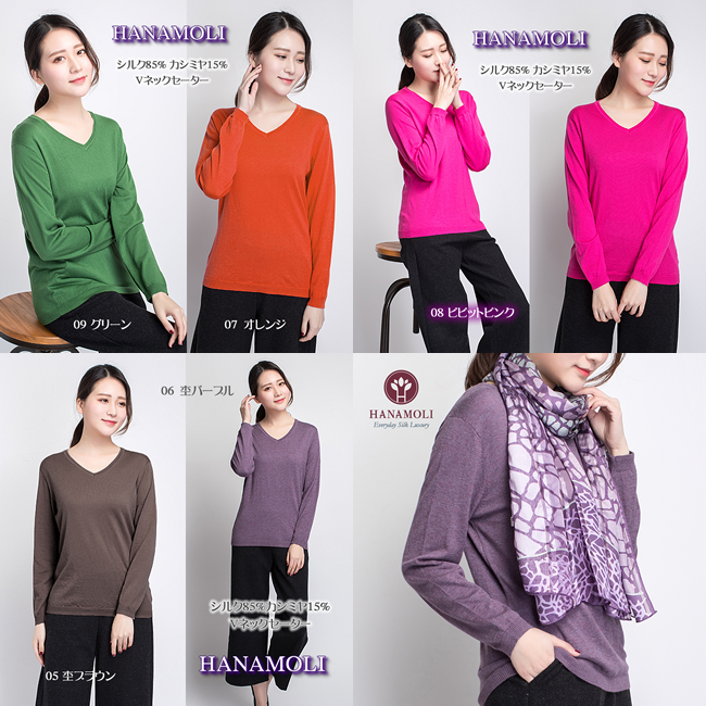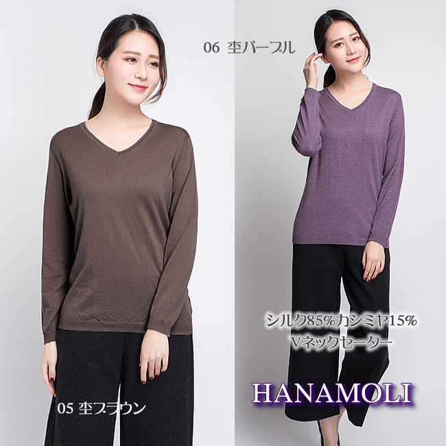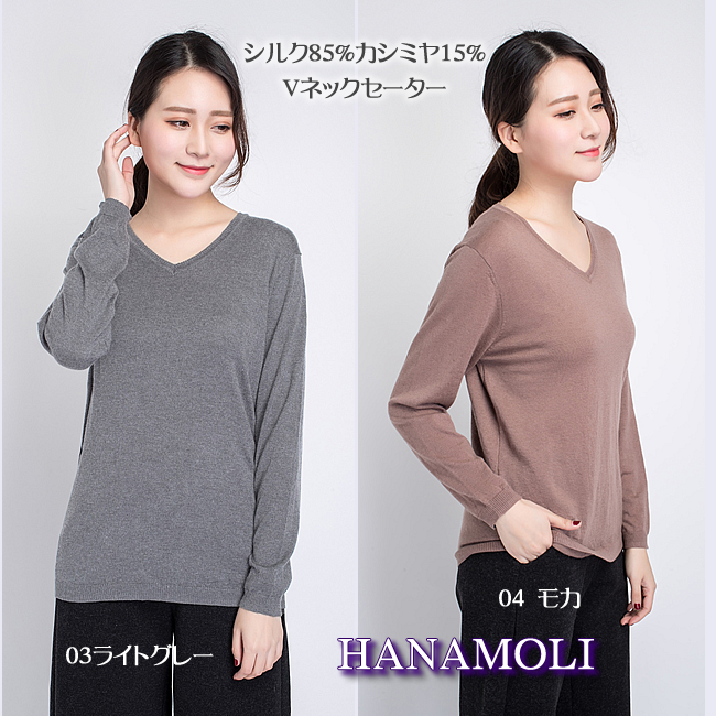 【新色新発売】■ シルクカシミヤVネック長袖ニット 【軽くて柔らか薄いのにあったかい】【ワンランク上の着心地】 |