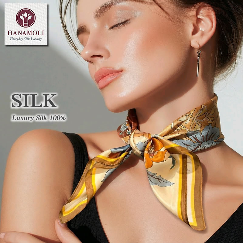 美しい光沢が贅沢なシルク100%サテンスカーフ【68cm×68cm】大きめサイズなので1枚で華やかに【35%OFF】