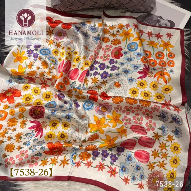 ■お勧めの鮮やかで肌に優しいスカーフ6柄が新登場 お気に入りの柄をお選び下さい。 ■サテンの光沢が美しいスカーフはご旅行にも1枚あると華やかさも増し、お勧めです。 68cmと大きめタイプでバックチャームとして結んでも素敵♪ ■絹100%だからこそのしっとりと柔らかでとろけるような贅沢な肌触り。 他素材にはない満足感を味わえます。襟元のアクセントに♪そしてふんわり暖か~ ■化学繊維に敏感な方や化学繊維独特の静電気のまとわり付が苦手な方に使って いただきたい本物のしなやかさです。ちょっとしたさりげない贈り物にもお勧め♪ |