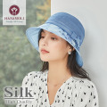 ■程よいつばの長さとかぶりやすさが人気のシルク帽子同色の花模様をつばにあしらっています。 カジュアルコーデにプラスするだけで華やかでおしゃれな印象に・・・ ■シルクシフォンを使用し、間にメッシュを挟み型崩れ防止をしています。 ●シルクは紫外線を吸収する特性があります。この特性を利用して紫外線から お肌を守るUVカット帽子です。一般的にシルク製品には 「日光に当てずに陰干ししてください」と注意書きがありますが、これはシルクの繊維が 紫外線を吸収し、徐々に黄変してしまうからです。 この特性を利用したのが、シルクUVカット帽子で、紫外線からお肌を守ります。 |