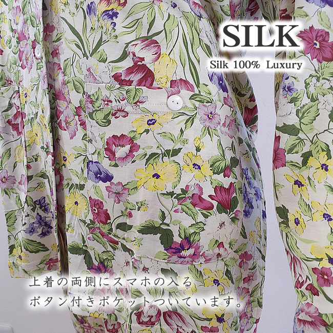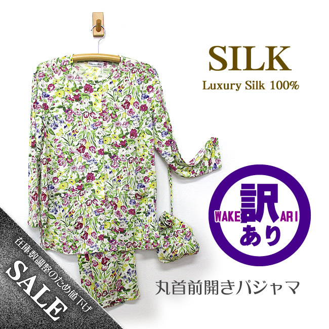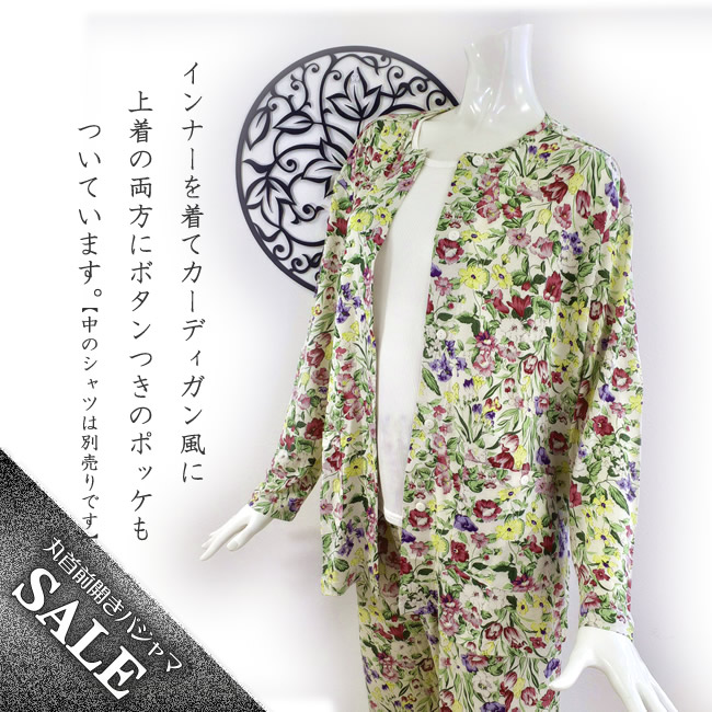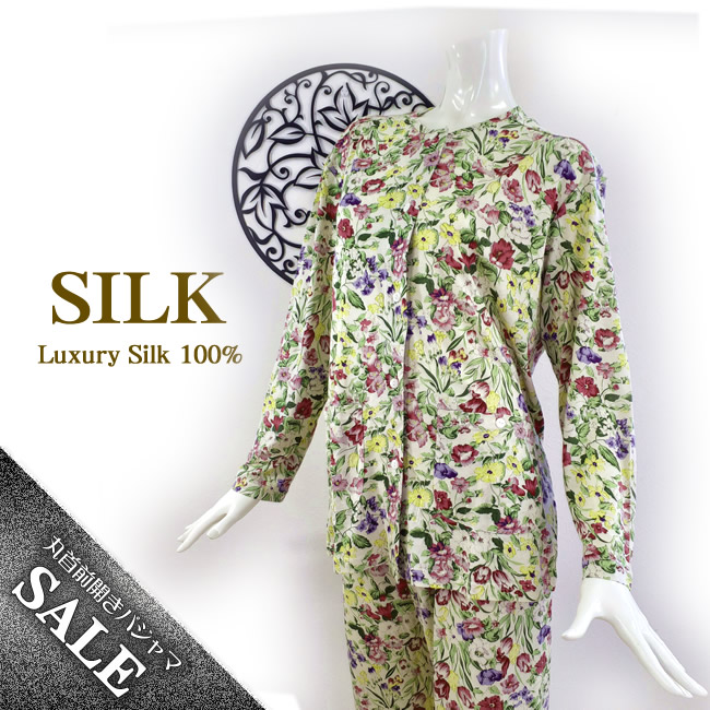 婦人ニットシルク丸首前開きパジャマ 人気のボタニカルフラワー【これはお得46%OFF】【プレゼントにも】 |