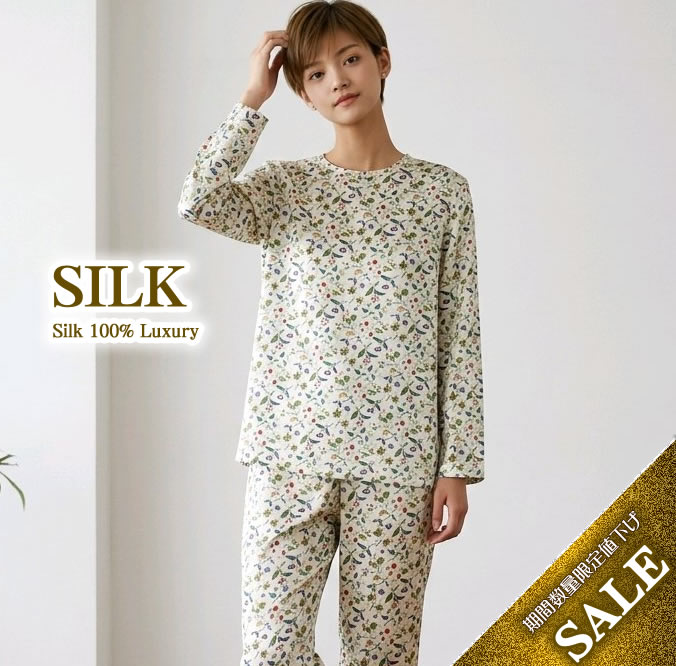 【シルク100%パジャマ】婦人 ニットシルク丸首パジャマ |