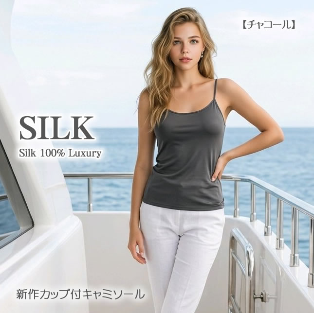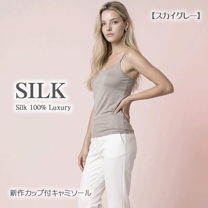 シルクのブラトップ【縫い目をなくしてリニューアル】 シルクカップ付きキャミソール ブラなしでリラックス♪ |