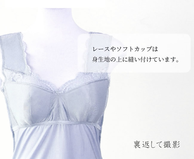■今回新色発売にあたり 旧カラーのブルーグレー限定で38%OFFでの販売です。大変人気商品です!! ■ブラ無しでも着られるパッド入り、バストの裏打ちも絹100% 背中の汗も吸収するキャミソールスタイル。 ■ソフトカップ付きで、お肌に当たる裏部分も絹100%ですが、肩の上からカップ部分まではレース一重になります。 お手持ちのカップを入れることも出来ます。 (身生地部分はシルク100%ですが、レースは ナイロン、ポリウレタンとなりますが、シルクで裏打ちしてありますので、お肌側はシルクになります。)肩の上からカップ部分まではレースがお肌に当たります。 |