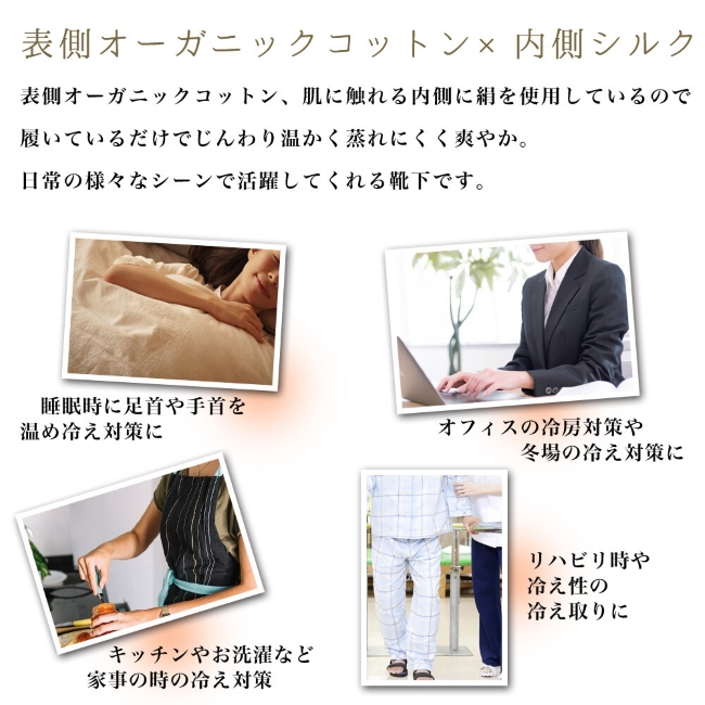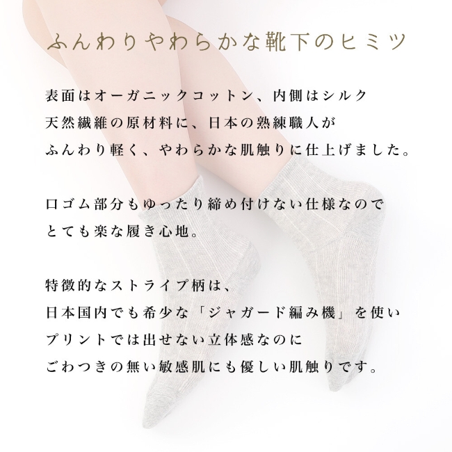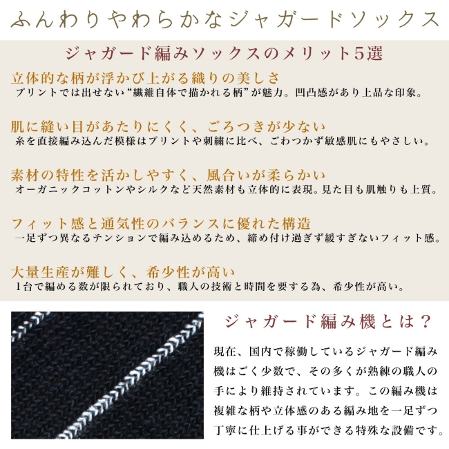 足首ゆ~ったり。訳ありの訳【在庫限定だから】オーガニックコットン×肌側シルク100%の 二重編みジャガードソックス 【45%OFF】豊富な5カラー |