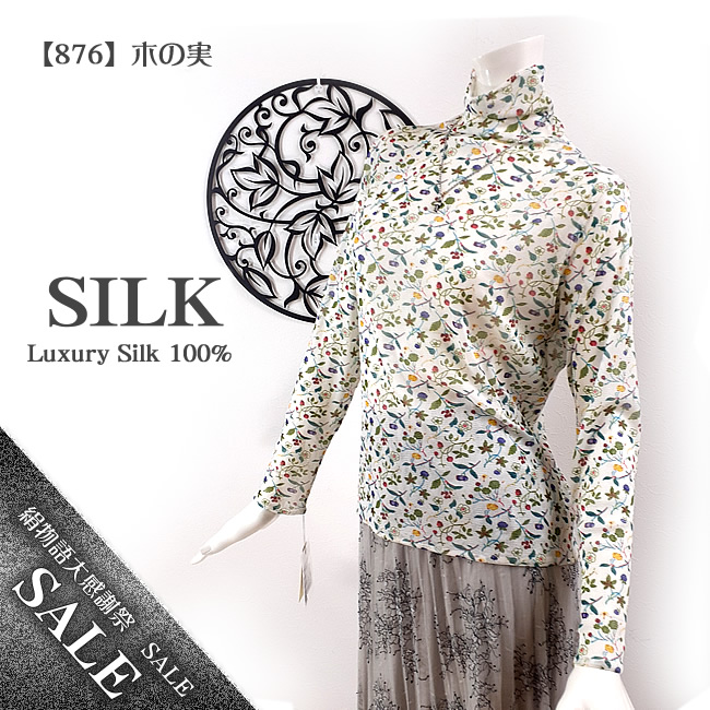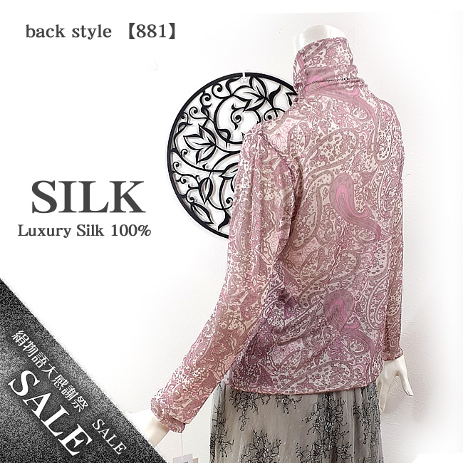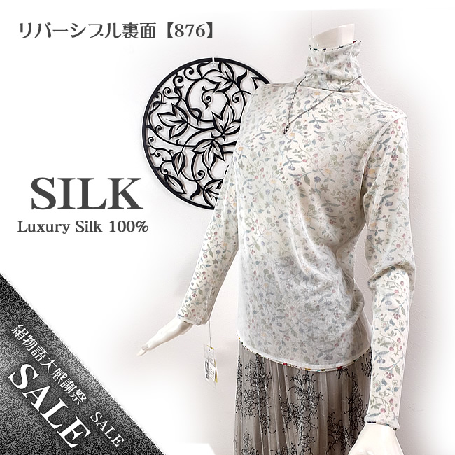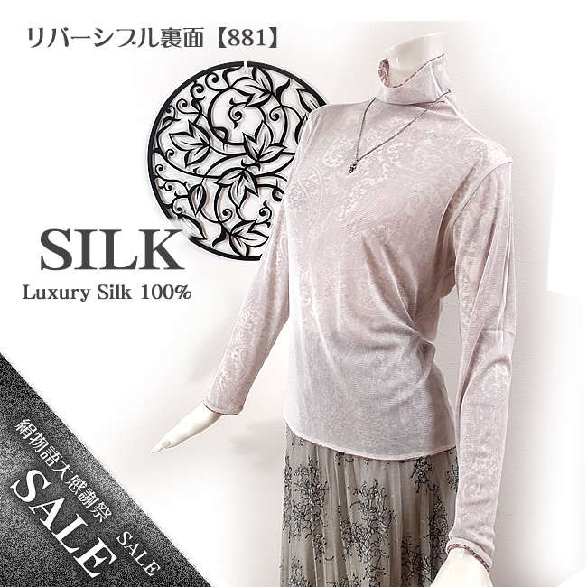【絹物語感謝SALE】45%OFF 【首元暖か】 リバーシブルシルク100%チュールハイネックカットソー 【メロウタイプ2種】【881】【876】 |