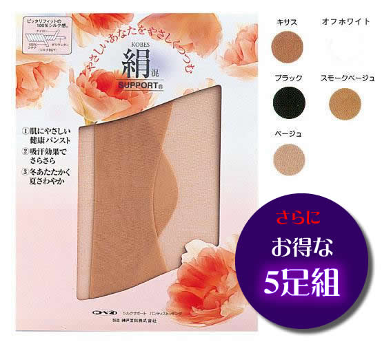 【最終販売・再生産終了】【さらにお得な5足組限定】【肌シルクパンスト】 神戸生絲シルクを扱い続けて90年。大人気商品「絹」のやさしいはき心地 |